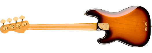 Celebrate 75 years of bass innovation with the 75th Anniversary American Professional PJ Bass. Crafted with a resonant alder body topped with a stunning flame maple top and finished in a classic 2-tone sunburst, this instrument radiates premium elegance. The Modern "C" shaped maple neck with 9.5" radius maple fingerboard and medium jumbo frets provide the smooth, fast playability that today's players demand. The 75th Anniversary Precision Bass® and Jazz Bass® pickups deliver the best of both worlds - that foundational P-Bass thump combined with the articulate growl and versatility of a J-Bass bridge pickup. Other premium appointments include gold-plated hardware throughout, a vintage HiMass™ bridge and tapered-shaft tuning machines. This limited-edition model represents the evolution of the Precision Bass legacy, a must-have for collectors and bass enthusiasts seeking modern performance.Features